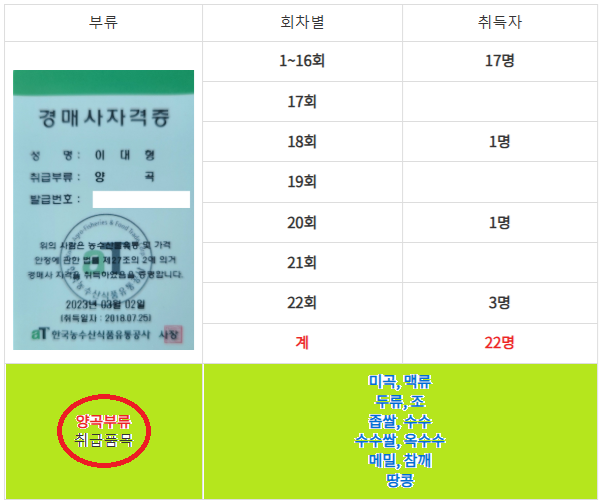 아울러, 현재까지 부류별 경매사자격증 취득자까지 알아보았습니다.